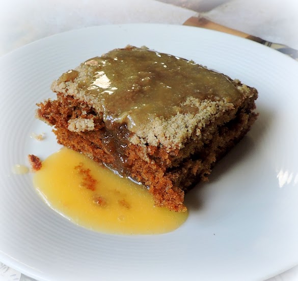 It is accompanied by a lovely sweet, buttery creamy sauce that you spoon warm, over top of the cake . . . this is oh so tasty.