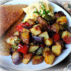 You needn't only keep these delicious potatoes for breakfast occasions. They also make a great light supper. That is how we enjoyed them today, along with some scrambled eggs and whole wheat toast. I think we have eggs for supper in one way or another at least once a week. In fact we are more likely to have them for supper than we are for breakfast!